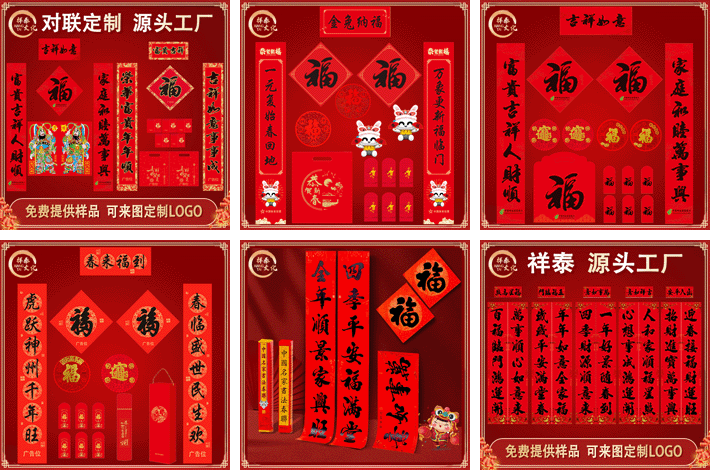 專業(yè)定制廣告對(duì)聯(lián)春聯(lián)、福字、窗花、紅包、禮包/禮盒。定制產(chǎn)品:植絨對(duì)聯(lián)、植絨福字、燙金對(duì)聯(lián)、彩印對(duì)聯(lián)、剪紙、利是封、紅包、彩印禮包、無(wú)紡布禮袋